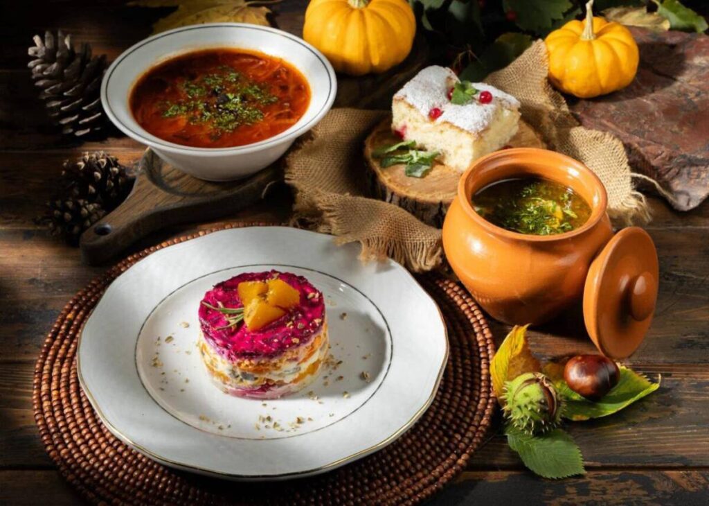 С наступлением осени рюмочная дополнила меню сезонными новинками, чтобы согреть гостей вкусами детства, ароматами урожая и уютной ностальгией по советским застольям. Осень – сезон согревающих сытных супов. Наваристый борщ варят на говяжьем бульоне, с черносливом, копчеными свиными ребрами и копченой грудкой. Чернослив придает супу особенный аромат, добавляет характерные сладковатые нотки, придавая вкусу глубину в сочетании с легкой кислинкой. Жаркое по-домашнему подают в горшочке с молодой деревенской картошкой и свининой — ароматное, как у бабушки в духовке. Ироничное прочтение советской классики – селёдке в тыквенном халате, которой ярких вкусовых акцентов и эстетики добавляет печеная тыква. Любимый вкус детства – приготовленный с душой воздушный яблочный пирог от тети Зины– идеальный вариант для чаепитий в осеннюю пору с самыми близкими.