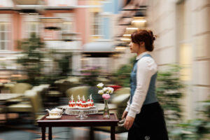 В его рецепте — меренга, сливочный крем с ванилью и ягоды. Десерт украшен силуэтом балерины. Каждый день «Павлова» выкатывается на сервировочной тележке в зал кафе «Мезонин» и курсирует по нему, приглашая гостей познакомиться с историей великой балерины и знаменитого десерта.